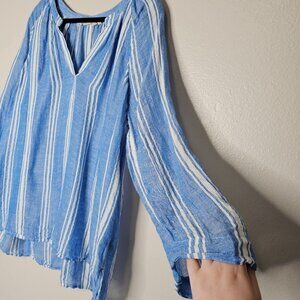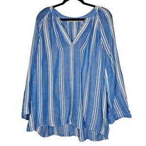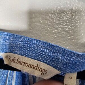 Soft Surrounding 1X Blue Striped Linen Blend Roll Tab Top Nautical Coastal Beach