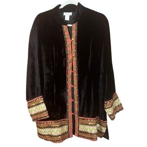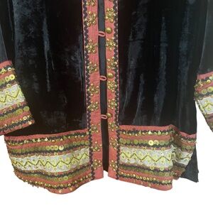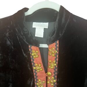 Soft Surroundings Black Velvet Embellished Mandarin Collar Boho Jacket Coat