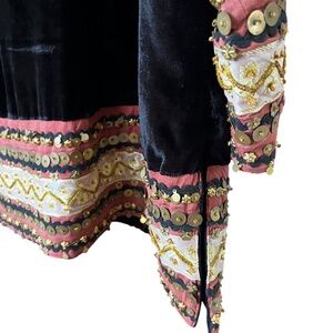 Soft Surrounding Black Velvet Embellished Mandarin Collar Boho Jacket Coat SZ XL