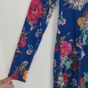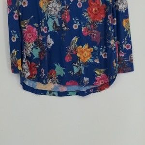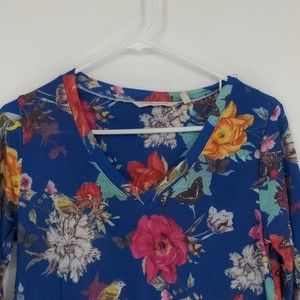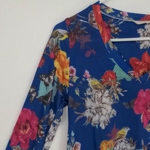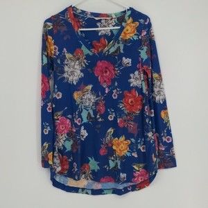 Soft Surrounding Blue Floral Butterfly Long Sleeve V Tunic Shirt Extra Small
