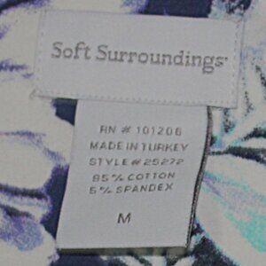 Soft Surrounings dark blue knit faux wrap dress with light blue floral print is a fitted (NOT bodycon) option is a pullover featuring a flattering v neck, making it perfect for casual occasions while the ruched detailing and spandex-cotton blend material add a touch of elegance. This knee-length faux wrap dress is versatile and can be worn in both spring and summer seasons.