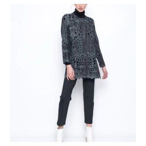 Soft Surrounding Charcoal Gray Long Crochet Lace Duster Jacket Button Up Size M