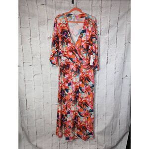 Soft Surrounding Dress Floral Jardin Faux Wrap Maxi 3/4 Sleeve Plus size 3X NWT