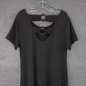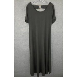 Soft Surrounding Dress Womens Sz L Olive Green Cotton Blend Short Sleeve Maxi