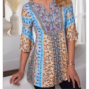 Soft Surrounding Fifi Embroidered Floral Tunic Top Colorful Bell Sleeve size L