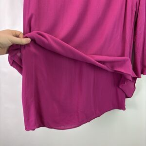 The Soft Surroundings Gabby Tunic in Fuschia is a stylish blouse in a vibrant pink color. This tunic features a comfortable and flowy design, ideal for casual or dressed-up occasions. The Soft Surroundings brand is known for its quality and attention to detail, making this tunic a versatile and fashionable addition to any wardrobe. Its tunic style offers a relaxed fit that is both flattering and comfortable for everyday wear.