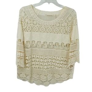 Soft Surrounding Ivory Boho Crochet Open Knit Shell Top - Sz S