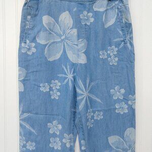 Soft Surroundings Lochlea floral chambray pants, size medium. 100% lyocell Tencel. In gently preowned condition, no flaws noted.