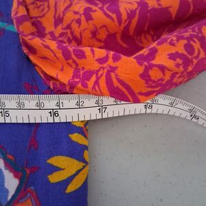Description: Soft Surroundings Hermosa Floral Embroidered Tunic Top Blouse Long Sleeve with Shell/Mother-of-Pearl Buttons. Wear Open as a Shacket or even a beach cover-up. Jazz up your basic button-down look with this sensational medley of pattern and color! Extra length in the back so you can wear it with your favorite leggings. Long-sleeve/button down. Stunning embroidery on back. 100% Viscose. Machine wash.