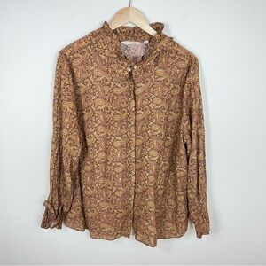 Soft Surrounding Paisley Print Ruffle Detail Button Down Shirt