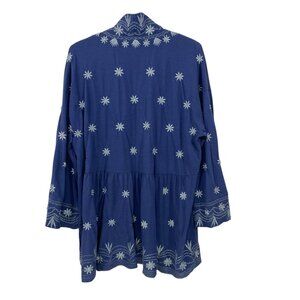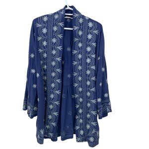 Soft Surrounding Size S/M Open Embroidered Blue Cotton/Linen Drape Cardigan Boho