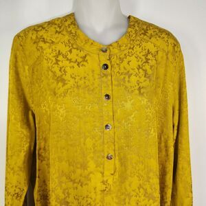 Soft Surrounding Top Blouse Women Medium Suranya Satin Gold Long Sleeve Jacquard