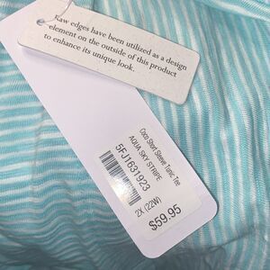 Soft Surrounding Wms Sz 2XL Aqua Sky Stripe Relaxed Fit Raw Edge Tunic Tee Shirt