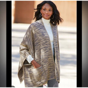 Soft Surrounding Wool Cashmere Cotton Go Lively Zebra Travel Poncho Sweater Wrap