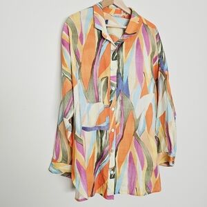 Soft Surroundings 100% Cotton Colorful Abstract Button-Up Women's Shirt Size 1X