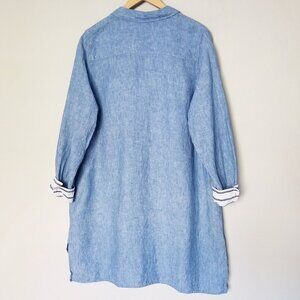 Soft Surroundings 100% Linen Lagenlook Chambray Blue Button Up Tunic Shirt 1X