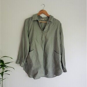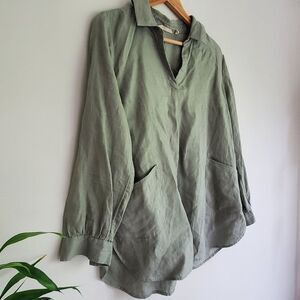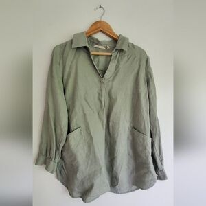 Soft Surroundings 100% Linen Light Green Long-Sleeve Collard Blouse Size Large