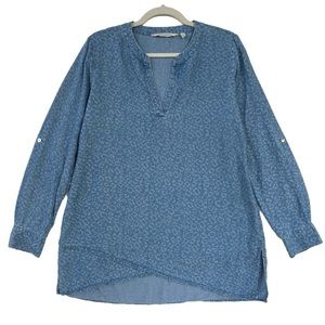 Soft Surroundings 100% Tencel Leopard Print Chambray Split Neck Tunic Size Small