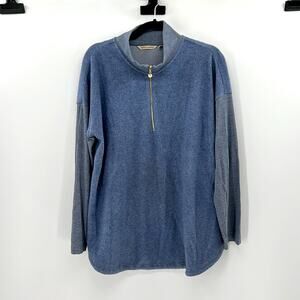 Soft Surroundings 1/4 Zip Fleece with ribbed sleeves - Blue - Large