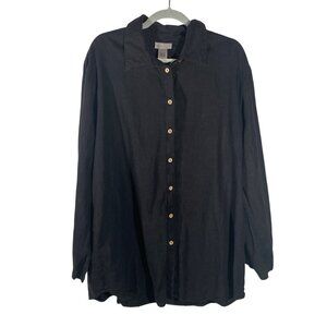 Soft Surroundings 1X Black tunic top Linen Button-Up Shirt neutral open cuff