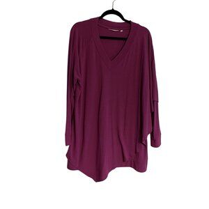 Soft Surroundings 1X Fuchsia Knit V-Neck Long Sleeve Overlay Madeline Tunic Top.