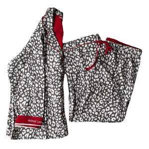 Soft Surroundings 2-PC Pajama Set Gray/White Flannel Animal Print Red Trim Sz 1X