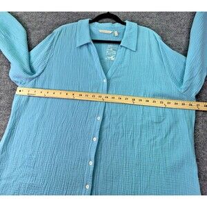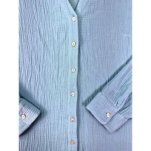 Soft Surroundings 2X Blue Button Front Textured Gauze Top Long Sleeve Tunic