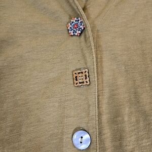 NWOT, Beautiful Deep Green Tunic Top, Close Up Pictures Of The Buttons Are Not Accurate Color Of Shirt, Buttons Are All Uniquely Different And Very Detailed, Hi-Low Bottem Hem
