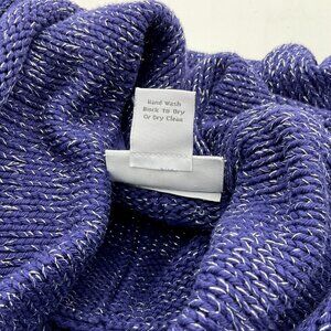 Soft Surroundings 3/4 Sleeve Navy Metallic Cowl Neck Button Front Sweater M/L