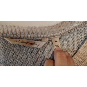 This Soft Surroundings tunic top sweater features a charming gray and light blue floral design. Perfect for cozy days at home or work, it offers comfort and style in a flattering 3X size. This beautiful top measures 33" in length from the top seam of the shoulder to the bottom hem and 26" from pit to pit. Please see all photographs as they are part of the description. Shipped with USPS Ground Mail.