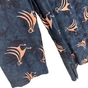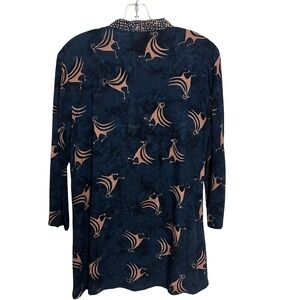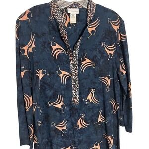 Soft Surroundings Abstract Bird Print Long Sleeve Tunic Top Navy Gold Small