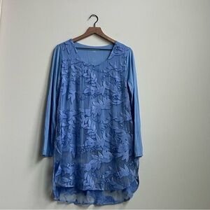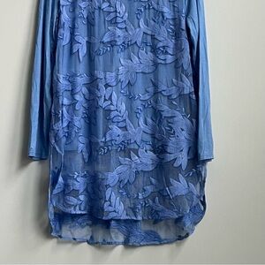 Soft Surroundings Adele Silk Overlay Tunic Top Long Blue floral Embroidered M