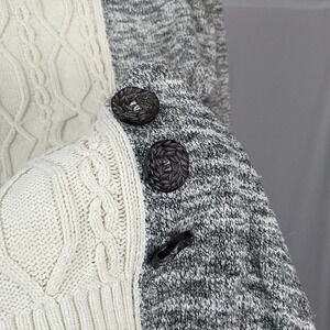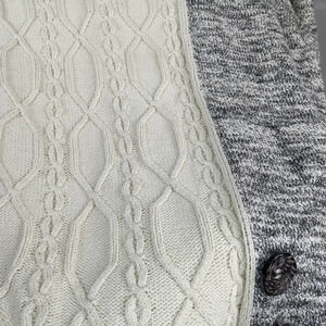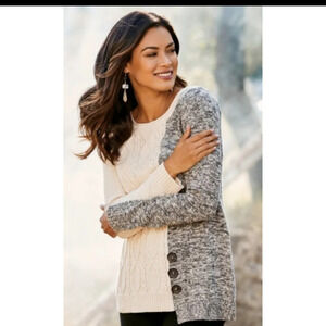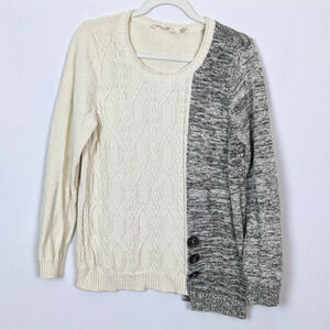 Soft Surroundings Adieu Button Sweater Two Tone Cable Knit Fisherman Boho Cotton L