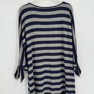 Soft Surroundings Adrift Dress Size M Women Shift Tie Cuffs Stripe NWT Blue Gray. Pullover. Viscose spandex. Scoop neck. 3/4 tie sleeves. Bust 42. Length 39. Measurements are approximate. Stretch. New.