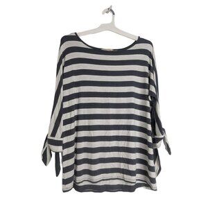 Soft Surroundings Adrift Striped Top Medium Gray White 3/4 Sleeve Nautical Ties