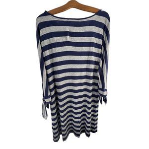 Soft Surroundings Adrift Tunic Top Womens M Tie Sleeves Gray Navy Striped