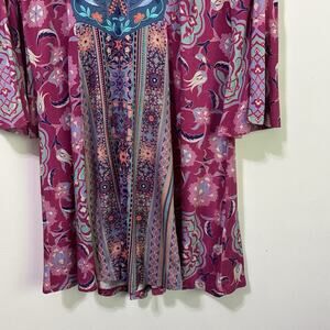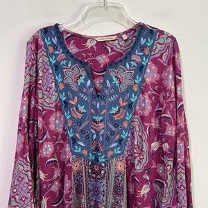 Soft Surroundings Aili Tunic Top S Embroidered 3/4 Sleeve Boho Pullover Colorful