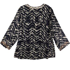 Soft Surroundings Akira Long Tunic Womens M Boho Chic Beaded Sequin Ikat Batik