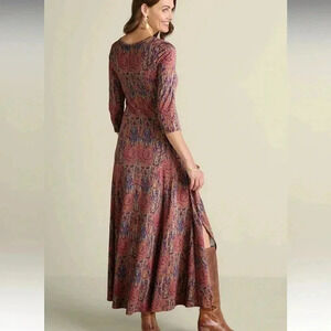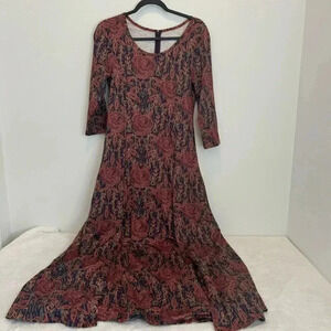 Artistic roses electrify your must-have maxi-dress for an instant chic look. Princess seams give it great shape. 3/4-length sleeves, scoop neck, back zip
