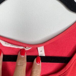 Soft Surroundings Alix Tunic Top Size 1X Rust V-Neck Mix Media Overlay Spring