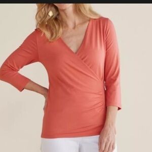 Soft Surroundings Alyssa Knit Top Apricot Brandy Womens XL 3/4 Sleeves