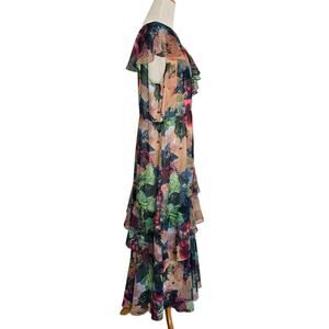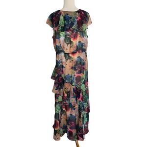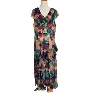 Soft Surroundings Ambrosia Floral Maxi Dress Tiered Ruffle Boho Women Large