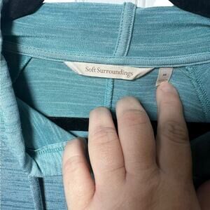 Soft Surroundings Aqua Heather Stretch Knit Riverland Tunic Hoodie Size Medium. No stains or holes. This hoodie is very comfortable and soft.