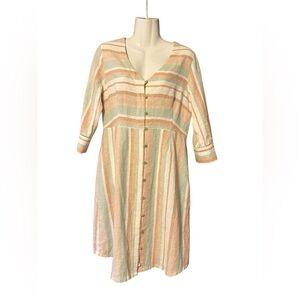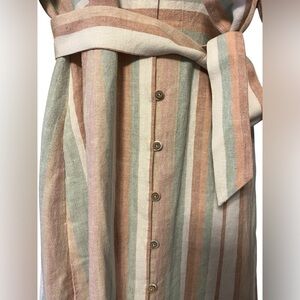 Soft Surroundings Arcata Linen Dress Sz PS Striped Boho Summer Gauzy buttons