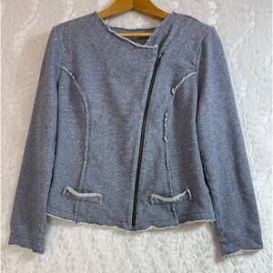 Soft Surroundings Assymetrical Zip Terry Jacket Light Blue Heather Size Medium