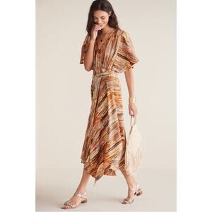 Soft Surroundings Cyra Painted Stripe Midi Asymmetrical Hem Midi Dress