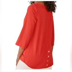 In beautiful preloved condition from a smoke and pet free home. Please review all photos before purchase and bundle for a great discount. Such a great gauze top, very well made and comfortable, very lagenlook and coastal style..Front to back details give this easygoing gauze top "my favorite" status. Vent placket with buttons in back, curved high-low hem.