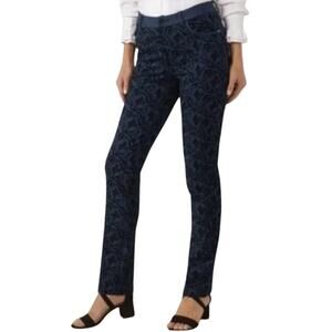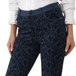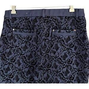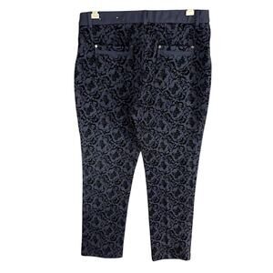 Soft Surroundings Baroque Leggings Womens Size PM Navy Flocked Velvet Straight Stretch Textured