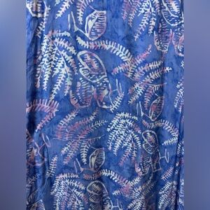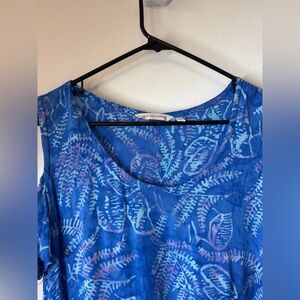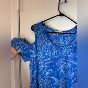 Soft Surroundings Batik Tropical Floral Leaf Cold Shoulder Blue Maxi Dress