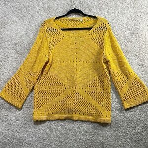 Soft Surroundings Beachwalk Sweater Size M Yellow Open Knit Pullover